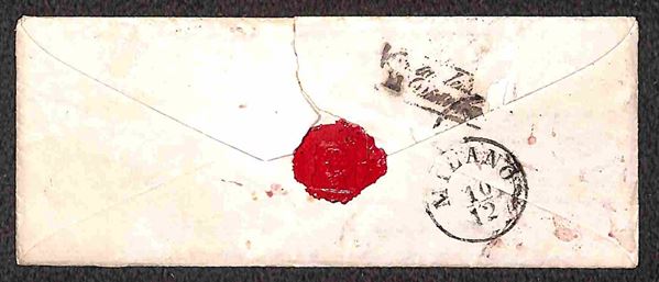 Muto a rombi (rosso - P.ti R1) di Pisa (rosso) - 6 crazie (7b - azzurro violaceo su azzurro) corto di margini - bustina per Milano del 8.12.53