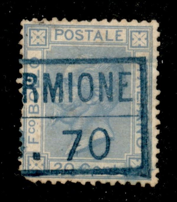 Navigazione sul Lago di Garda - (Piros.fo Se)rmione.70 (azzurro - P.ti R3) su 20 cent (26 - Regno) - l'unico pezzo conosciuto usato sciolto