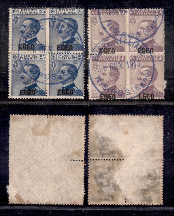 Nisiro (Egeo) Poste Italiane - Soprastampati (1/2 - Egeo) - quartine usate