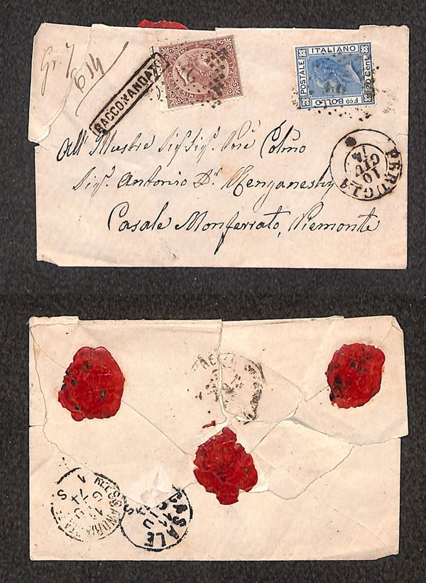 Numerale a punti di Perugia 10.6.74 (P.ti 7) - bustina raccomandata per Casale con affrancatura di Regno (19+16)