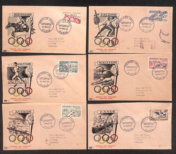 Olimpiadi (978/983) - 6 FDC del 28.11.53 - viaggiate in Italia