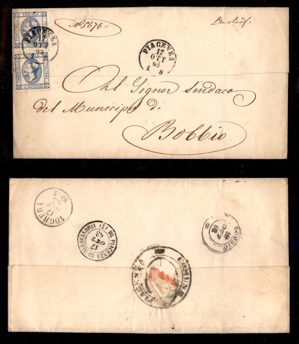 Piacenza (P.ti 6) - due 15 cent (13 - Regno) su lettera per Bobbio del 17.10.63