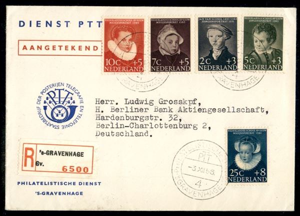 Ritratti (685/689) - serie completa su raccomandata da Gravenhage a Berlino del 3.12.56