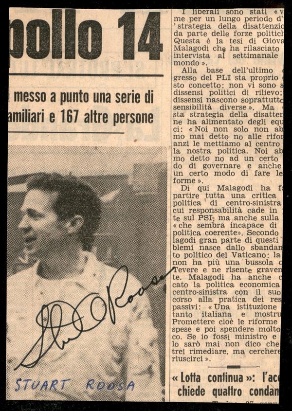 Roosa Stuart (astronauta) - autografo su ritaglio di giornale applicato su cartolina