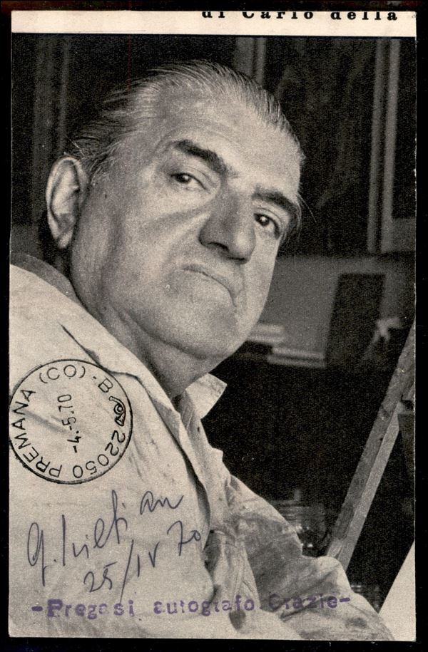 Sciltian Gregorio (pittore) - autografo su cartolina del 1970 rispedita in busta