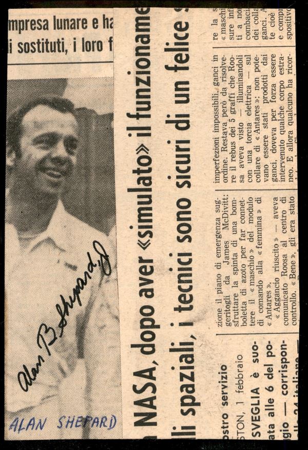 Shepard Alan (astronauta) - autografo (non catalogato) su ritaglio di giornale applicato su cartolina del 1971