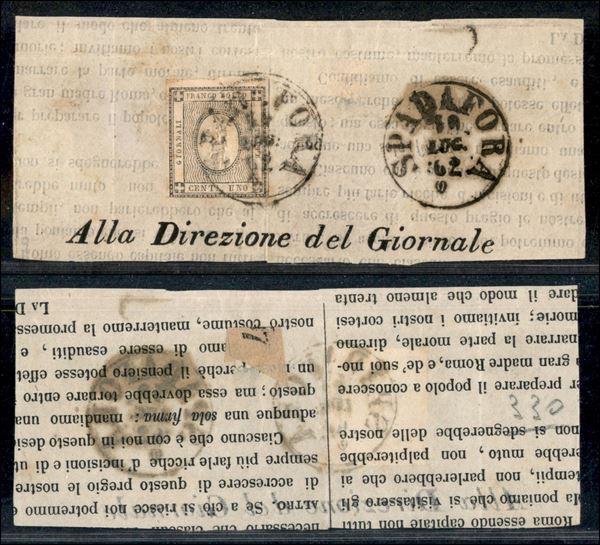 Spadafora 19.7.62 (P.ti 9) - 1 cent (19 - Sardegna) su frammento - corto in basso