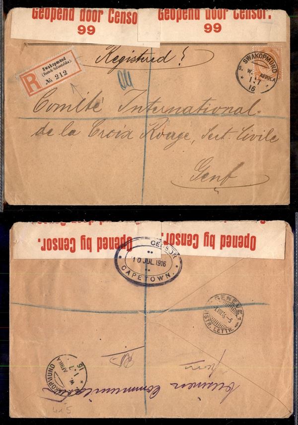 Swakopmund 1.7.16 - raccomandata per la Svizzera - censure