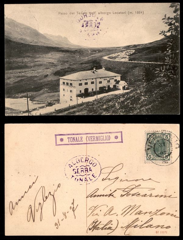 Tonale (P.ti 7) - cartolina (veduta del Passo) per Milano del 31.8.07