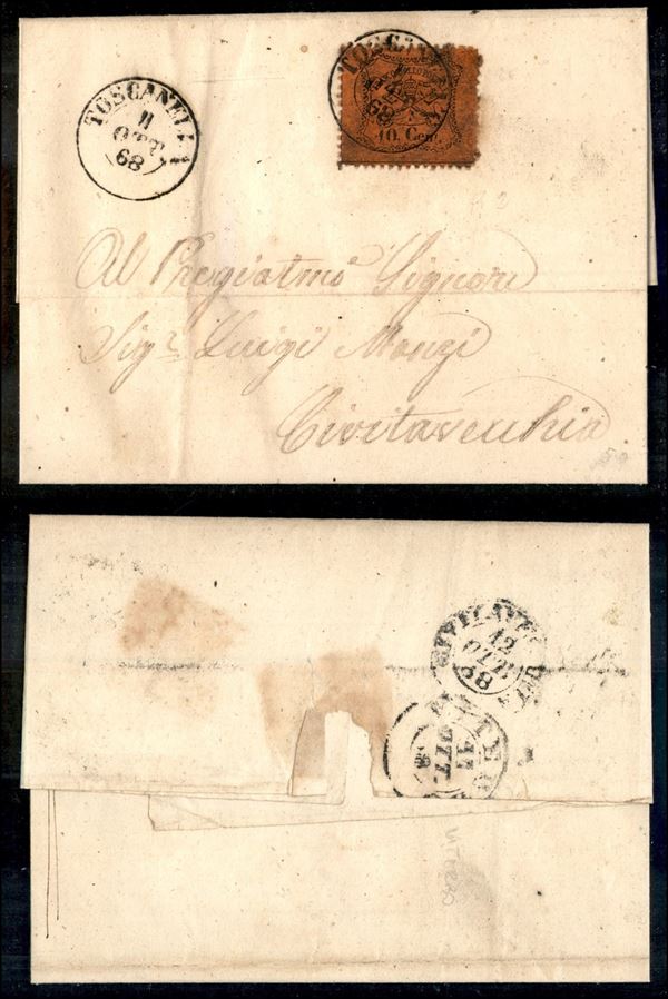 Toscanella (P.ti 3) - 10 cent (26) su lettera per Civitavecchia del 11.10.68