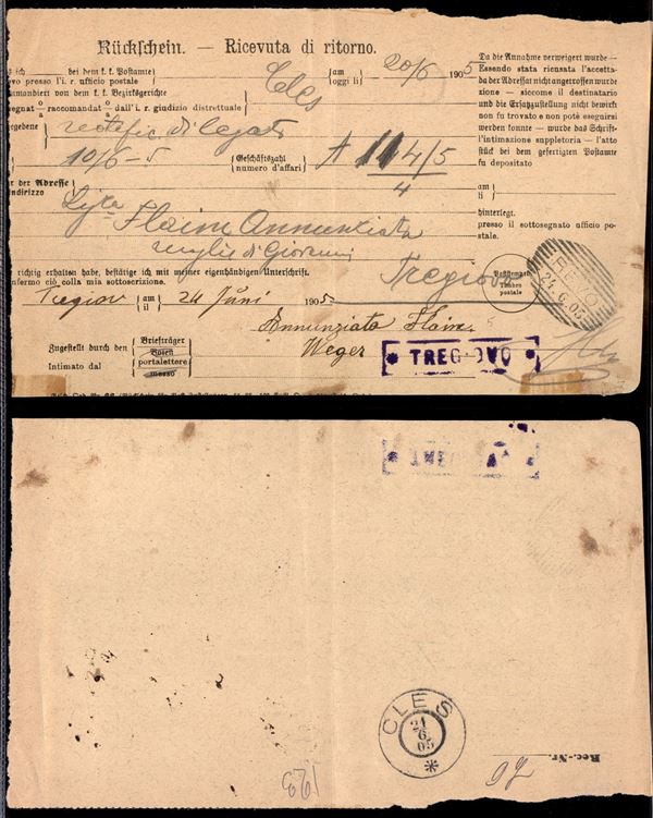 Tregiovo (P.ti 7) su Ricevuta di Ritorno da Cles del 20.6.05