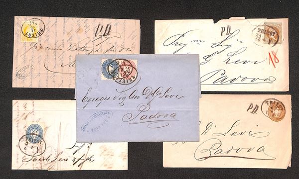 Trieste - 1864/1873 - 5 oggetti postali con affrancature del periodo