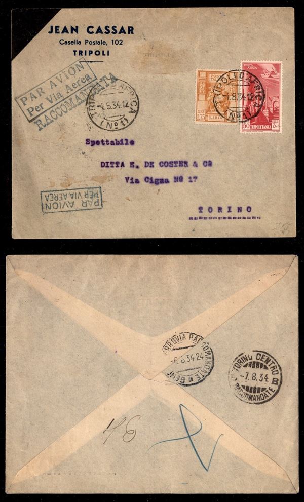 Tripoli d’Africa (N.1) 4.8.34 - aerogramma raccomandato per Torino (106 + Tripolitana 9 Aerea)