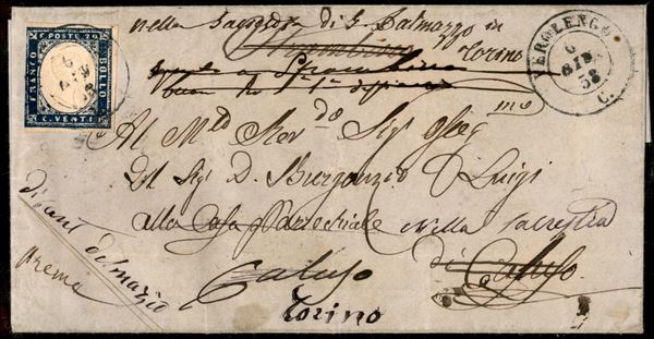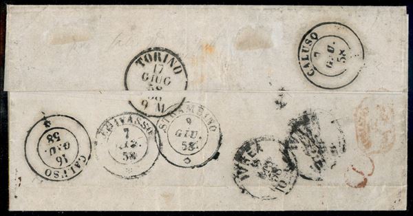 Verolengo (P.ti 13) - 20 cent (15A) su lettera per Caluso del 6.6.58 - corto a sinistra (11.000+)