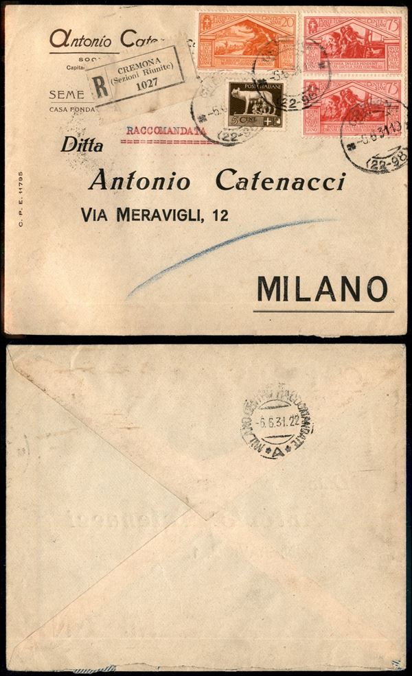 Virgilio (283+ due 287) + complementare (243) - raccomandata da Cremona a Milano del 6.6.31