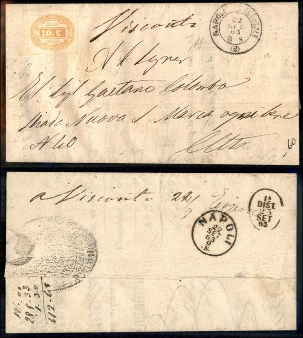Visconti (manoscritto) ripetuto al retro (con data) - 10 cent (1 - Segnatasse) - circolare da Napoli del 24.9.63