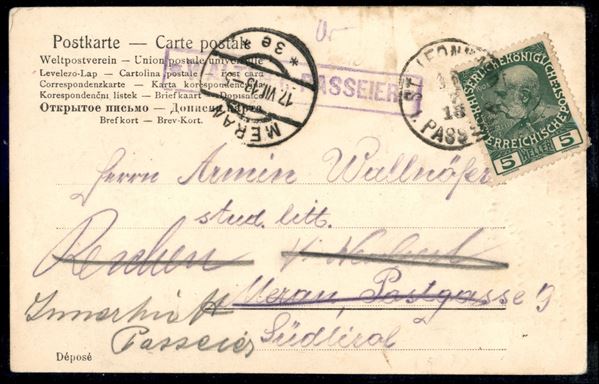 Walten I. Passier (P.ti 7) - cartolina (veduta fotografica) per Merano del 17.7.13