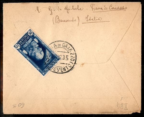 1,25 lire Salone Aeronautico (387) al verso di lettera da Piana di Caiazzo per gli USA del 13.12.35