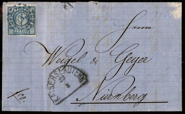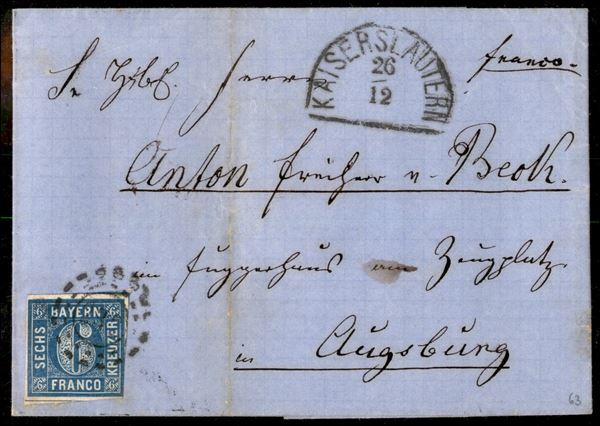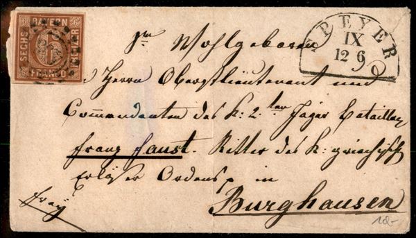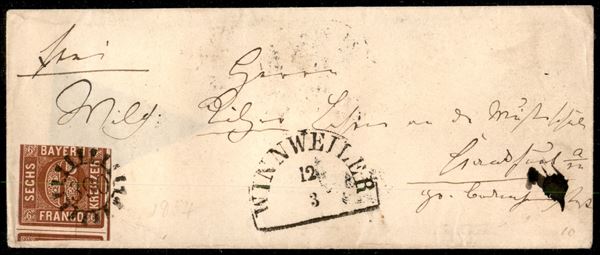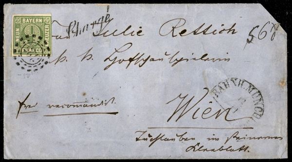 1854/1864 - Insieme di cinque letterine affrancate con 6 kreuzer Cifra (5 - due) + 9 kreuzer Cifra (6 - una) + 6 kreuzer Cifra (11 - due) - da esaminare