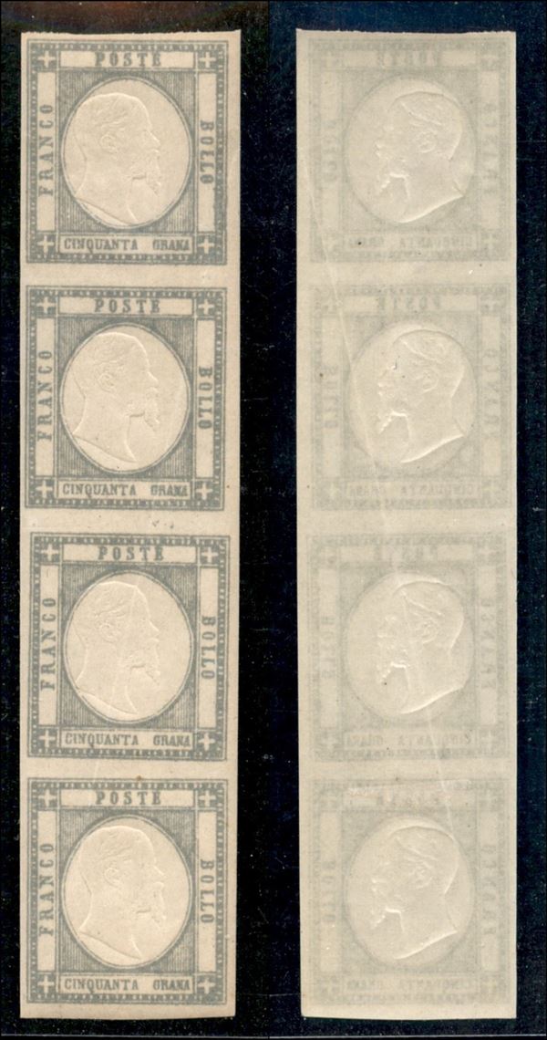 1861 - 50 grana (24) - striscia verticale di 4 - gomma integra - leggera piega diagonale (560+)