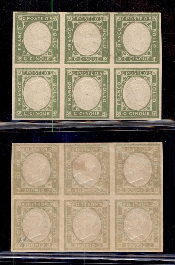1861 - Province Napoletane - Non Emessi - 5 cent (1) - blocco di sei (cinque con gomma integra) - inchiostrazione anomala in alto - Diena