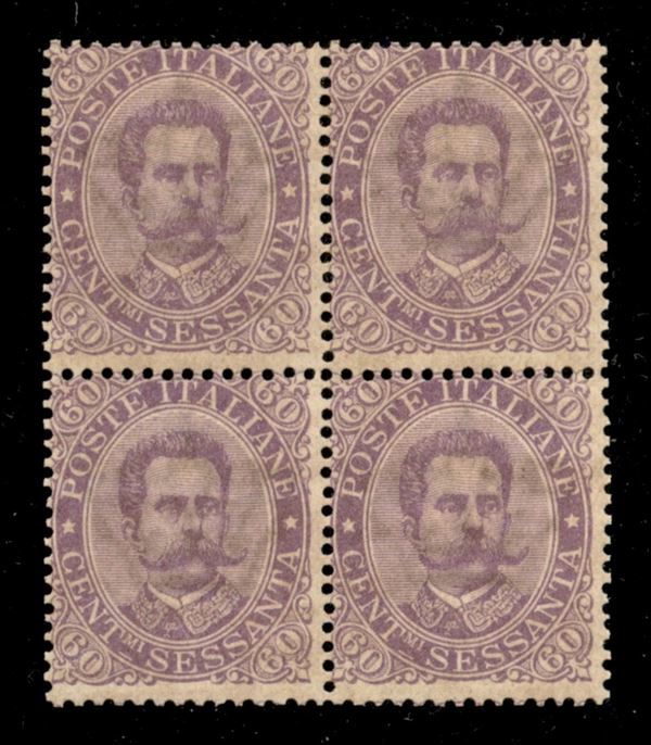 1889 - 60 cent Umberto I (47) - quartina - gomma integra bruna