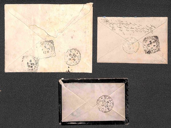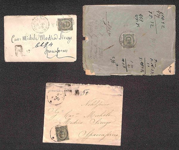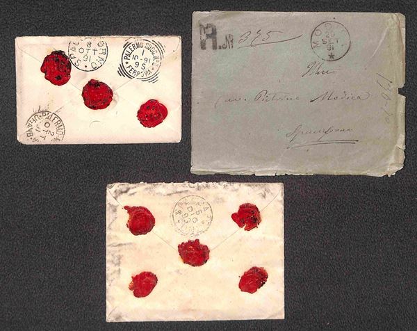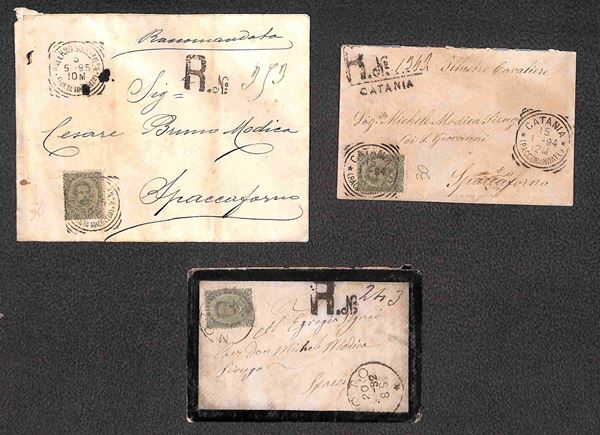 1891/1895 - Sei raccomandate del periodo affrancate col 45 cent Umberto (46) dirette a Spaccaforno (215)