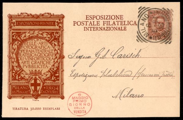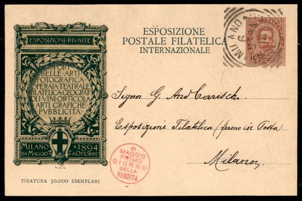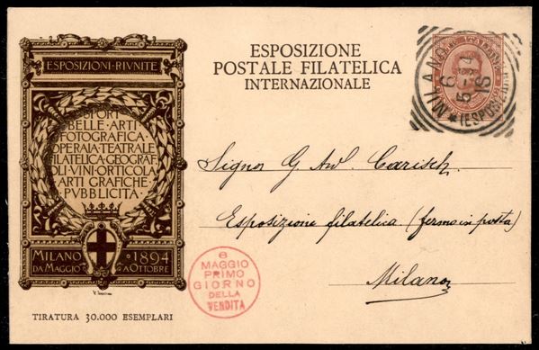 1894 - Esposizione Filatelica Milano (CC9 1/5) - serie completa con 4 FDC + 1 7.5.94 - bell'insieme