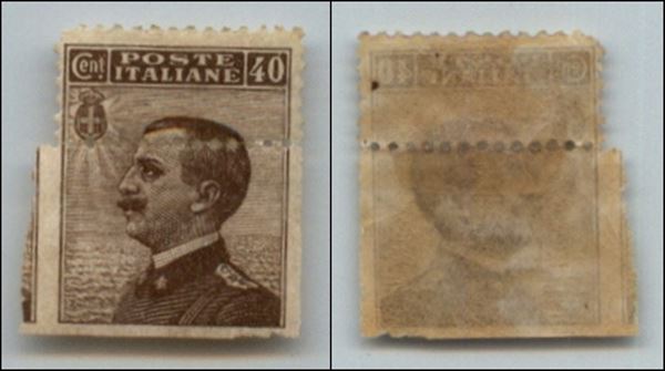 1908 – 40 cent Michetti (84gam varietà) – dentellatura inferiore spostata in alto (15 mm.) - gomma originale – non catalogato