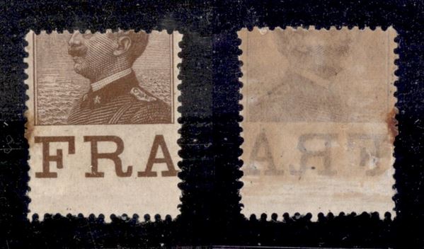 1908 - 40 cent Michetti (84mc - varietà) - dentellatura spostata in basso (12 millimetri) con scritte marginali - gomma originale - spostamento non catalogato - punto giallo sulla dentellatura a sinistra - rarità