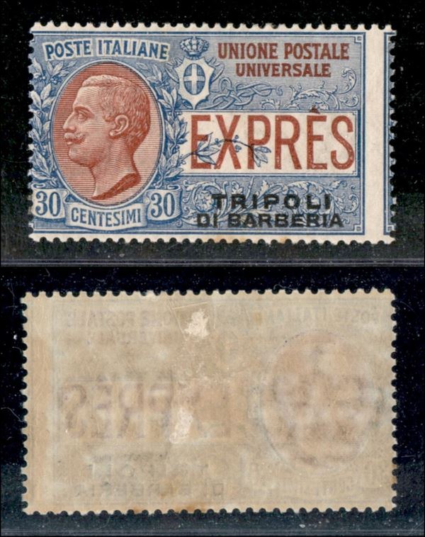 1909 - Espressi - 30 cent (2 - varietà) - doppia soprastampa (una in albino/a secco) - gomma originale