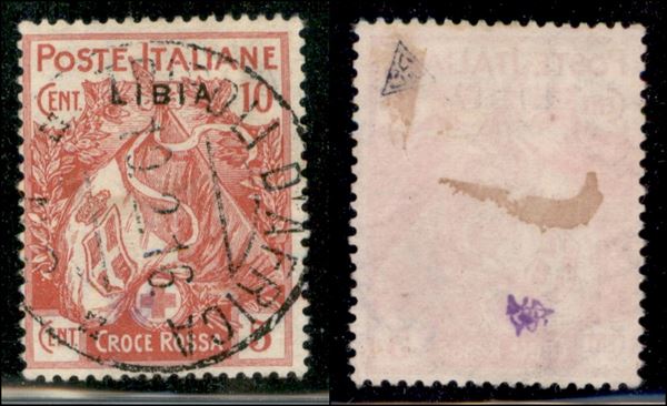 1915 - 10 cent Croce Rossa (13a) - soprastampa sottile - usato (100)