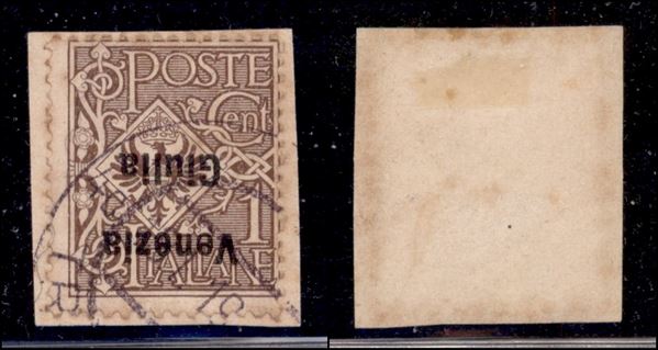 1918 - 1 cent Floreale (19a) con soprastampa capovolta usato su frammento