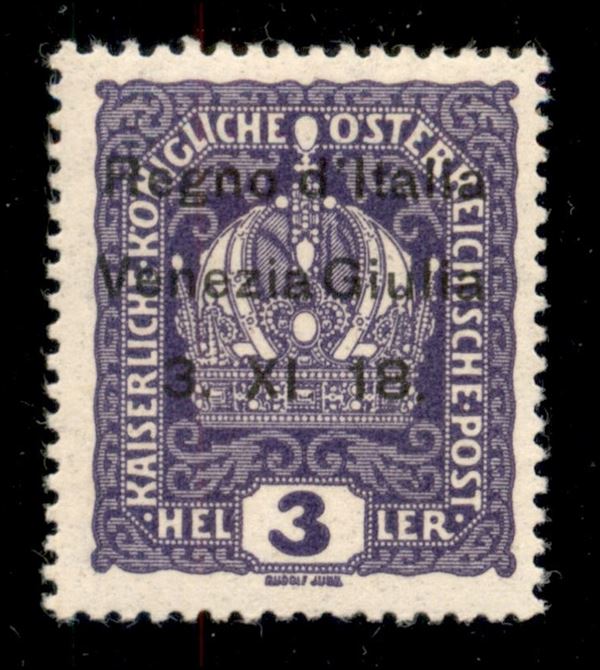 1918 - 3 heller (1o) - senza punto dopo XI - gomma integra con lieve falla al centro
