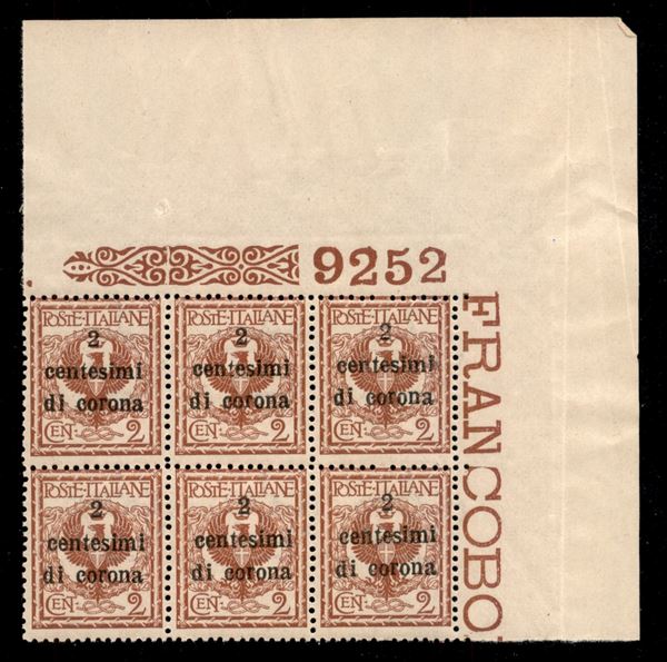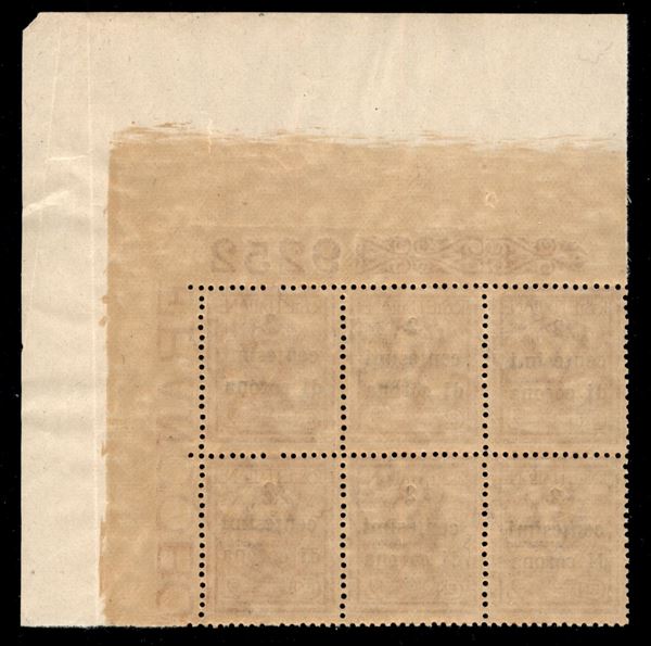 1919 - 2 cent su 2 (2) - blocco angolare di 6 con numero di Tavola (9252) - gomma integra