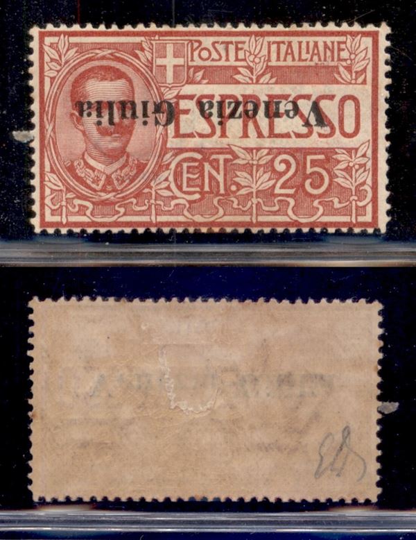 1919 - 25 cent (1a) con soprastampa capovolta - gomma originale - Diena (1.200)