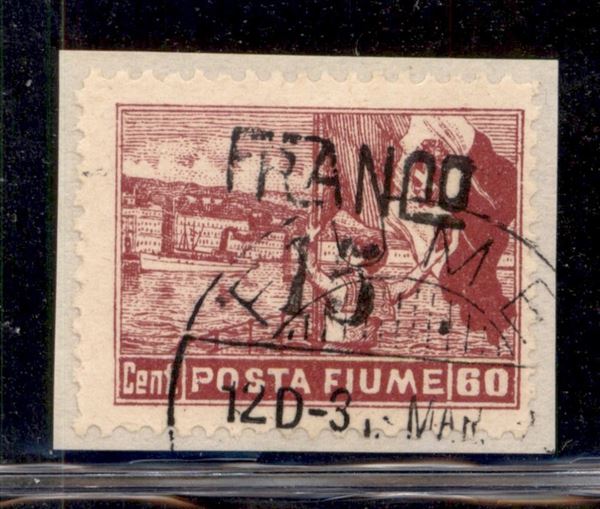 1919 - Franco 15 su 60 cent (D 80ga) con soprastampa obliqua usato su frammento