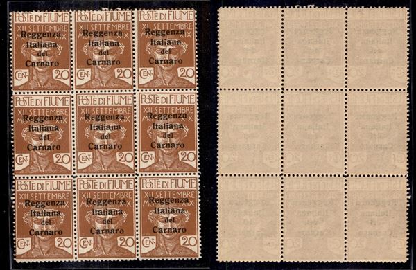1920 - 20 cent Reggenza (138) - blocco di 9 - gomma integra