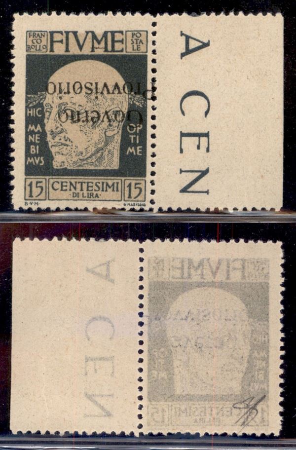 1921 - 15 cent Governo Provvisorio (151ab) con soprastampa capovolta spostata a sinistra - gomma integra (97)