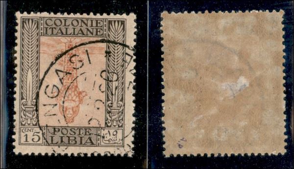 1921 - 15 cent Pittorica (25c) usato - centro capovolto - punto di assottigliamento al retro (400)