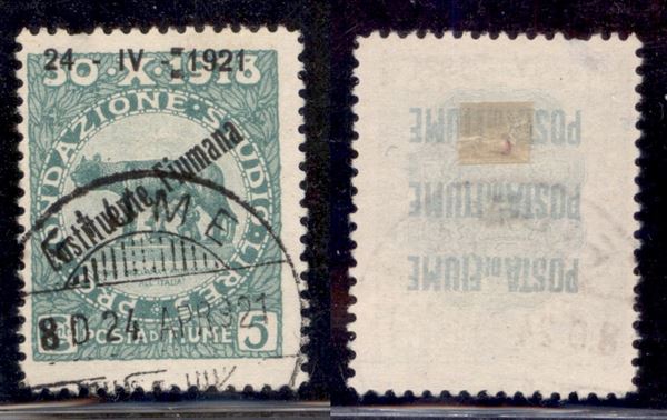 1921 - 5 cent Costituente (164ni - varietà) usato - doppio spazio tipografico prima di 1921 - non catalogato