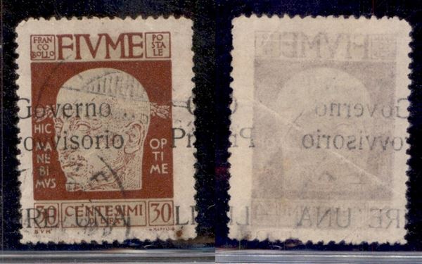 1921 - Una lira su 30 cent (159oa) usato - soprastampa spostata (G a cavallo + RE a sinistra) - non catalogato