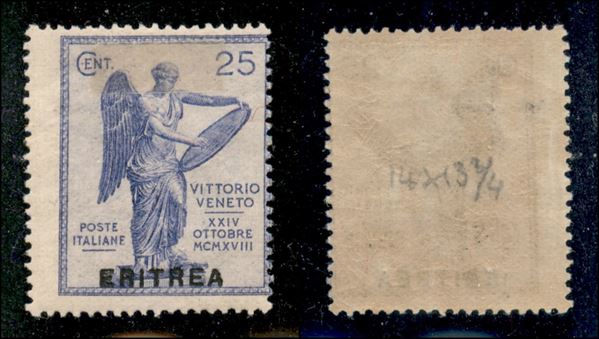 1922 - 25 cent Vittoria (53g varietà e) con filigrana croce dentellato 14 x 13 - gomma integra