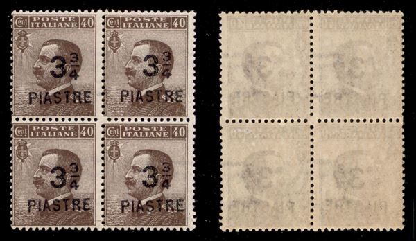 1922 - 3 3/4 piastre su 40 cent (61) in quartina - gomma integra