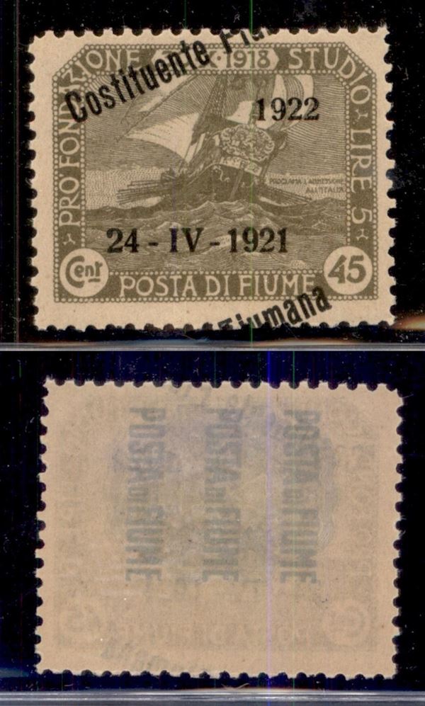 1922 - 45 cent Costituente (183Ka) - soprastampa spostata a cavallo - gomma integra con falle naturali (120)