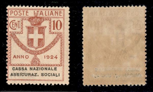 1924 - 10 cent Assicuraz. Sociali (25) - gomma integra (85)