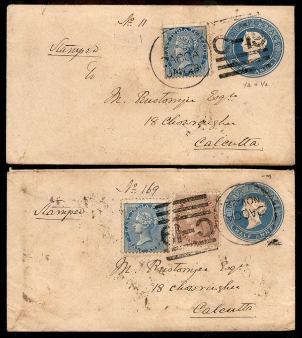 1924/1925 - due buste postali con complementari da Docca a Calcutta