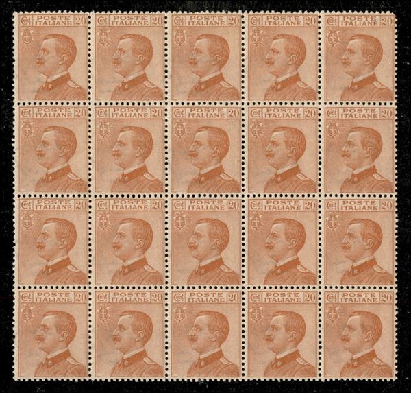 1925 - 20 cent Michetti (183) - blocco di 20 - gomma integra - centratura da discreta a ottima