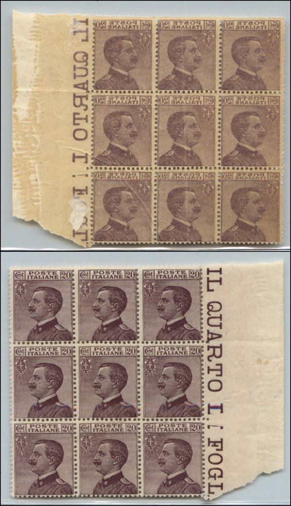 1926 – 20 cent Michetti (204f) – blocco di 9 bordo foglio con decalco – gomma integra (270+)