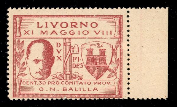 1930 - 30 cent (1) - bordo di foglio - gomma integra con lievi abrasioni al recto - Chiavarello